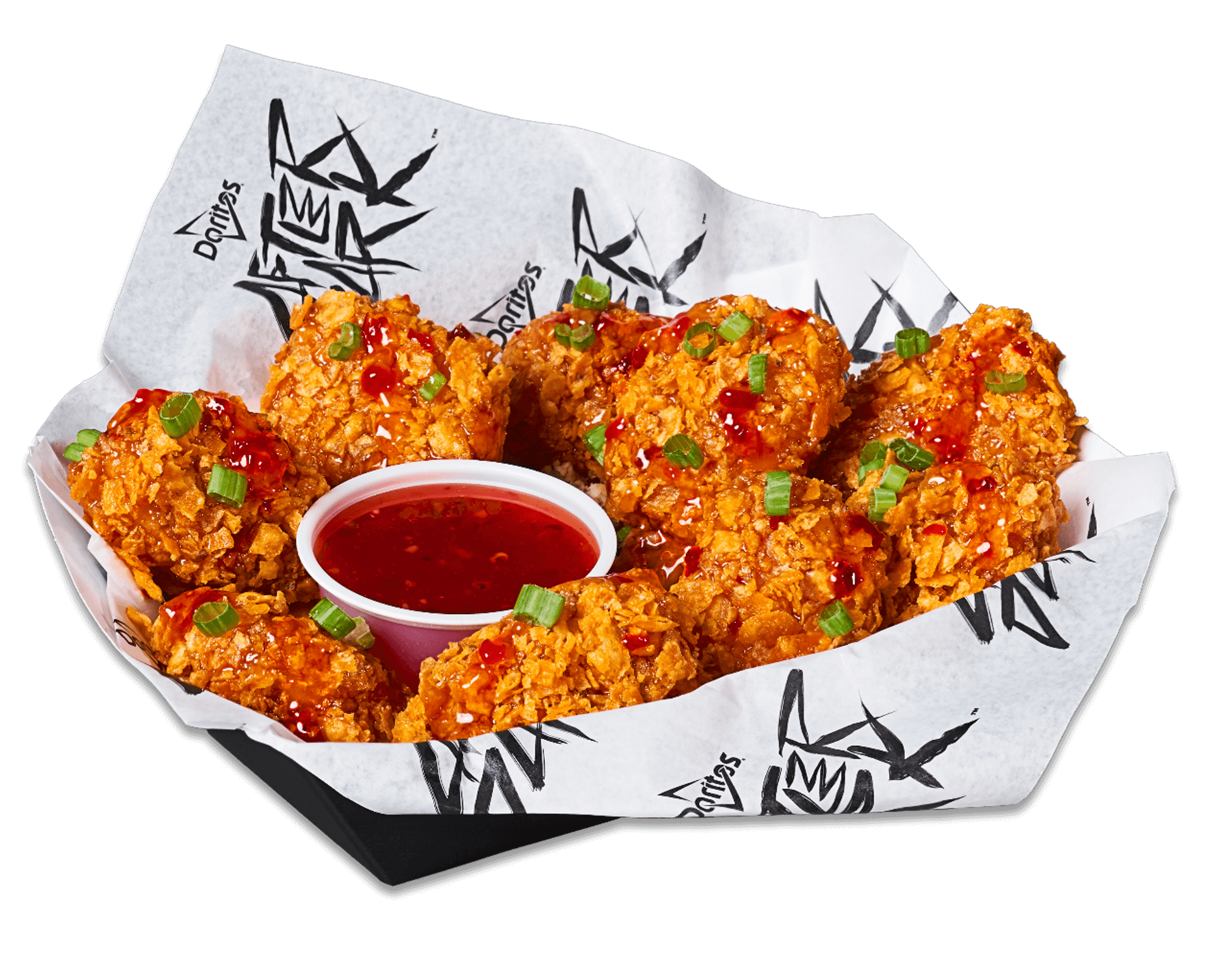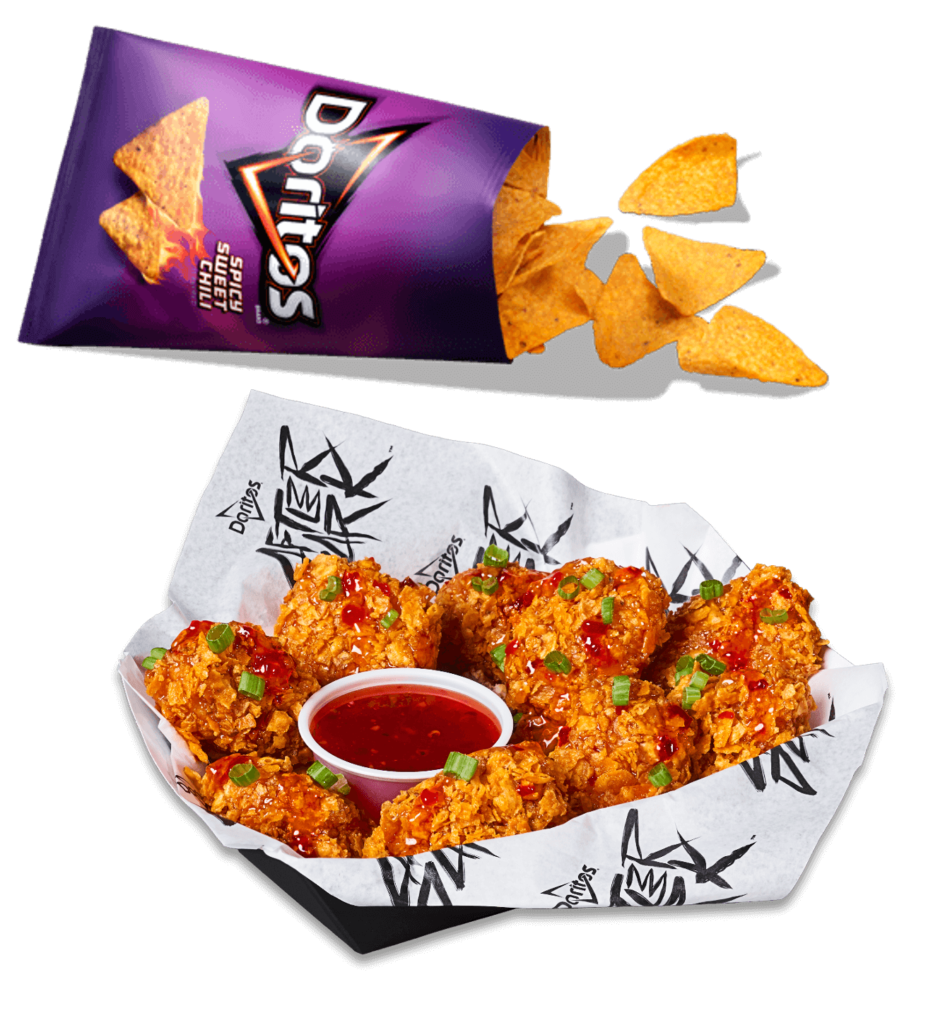 Inspired by Japanese fried chicken, these crispy bites are sprinkled with crushed Doritos® Spicy Sweet Chili flavored tortilla chips and served with a side of tantalizing sweet chili sauce for a tasty encore!