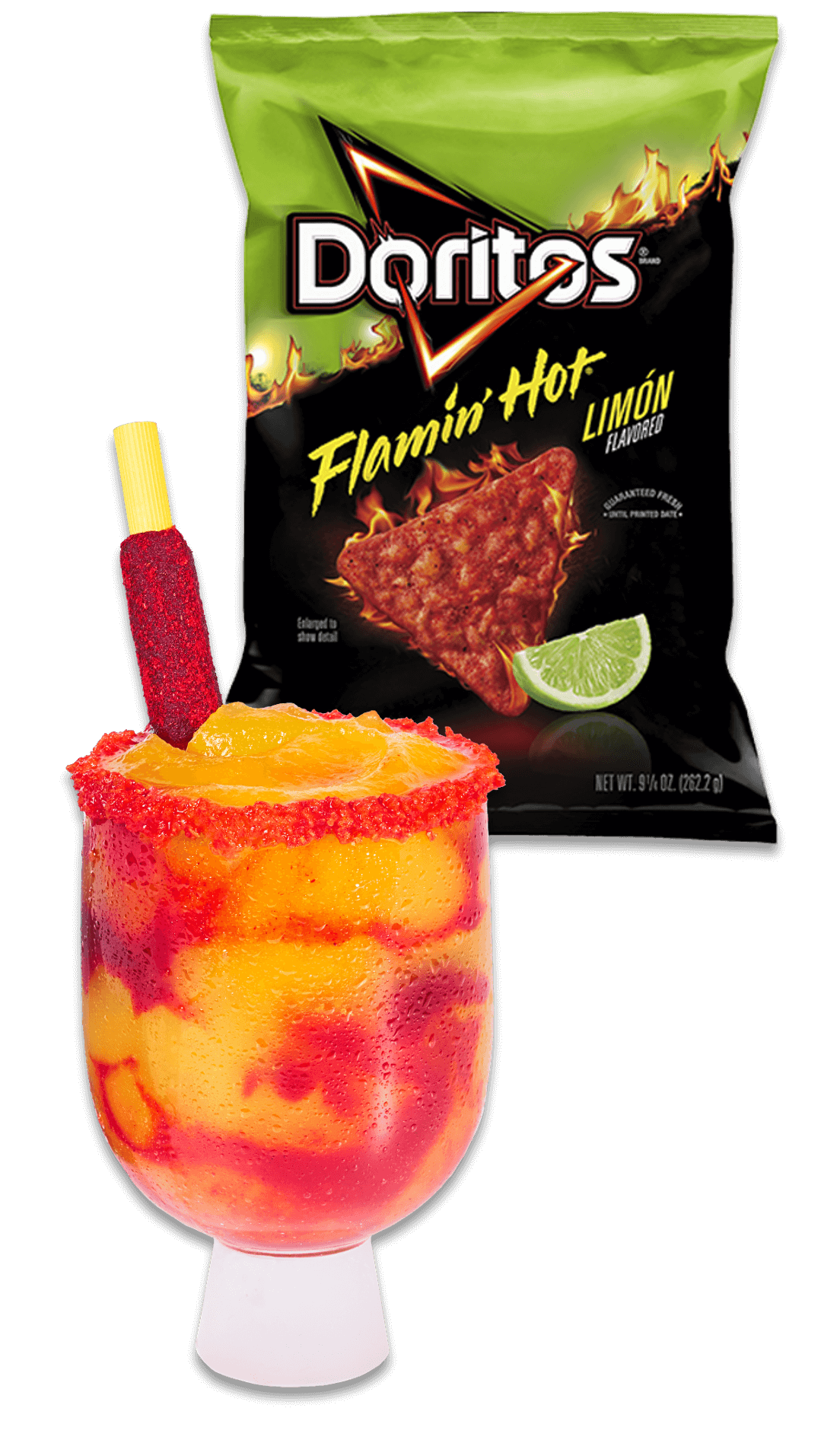 Taste a bold new act with this cool and refreshing frozen mango cocktail swirled with Doritos Flamin’ Hot Limón-infused chamoy and served with a tangy tamarind candy straw.