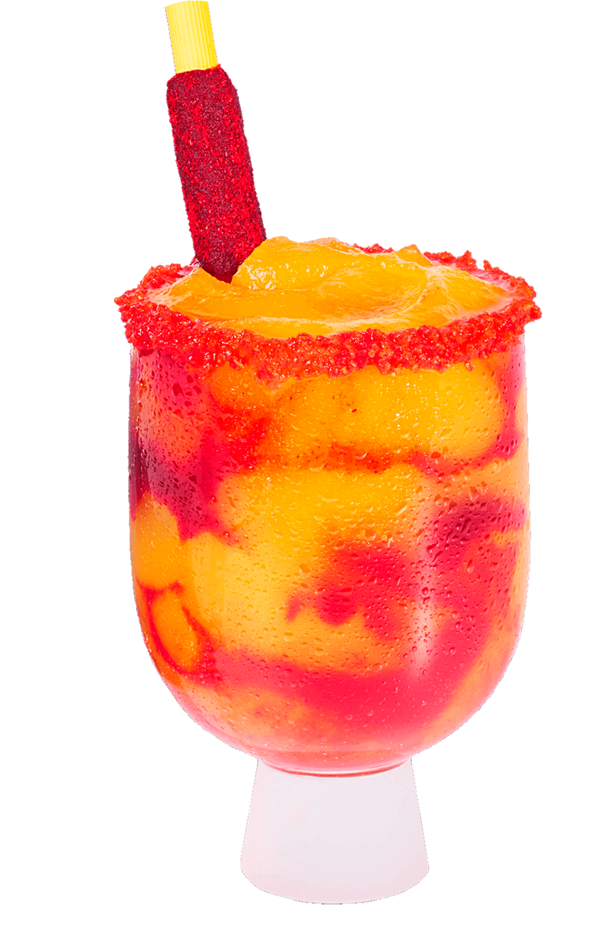 Tequila – Mango Slushie - Flamin’ Hot Chamoy Syrup – Tamarindo Straw