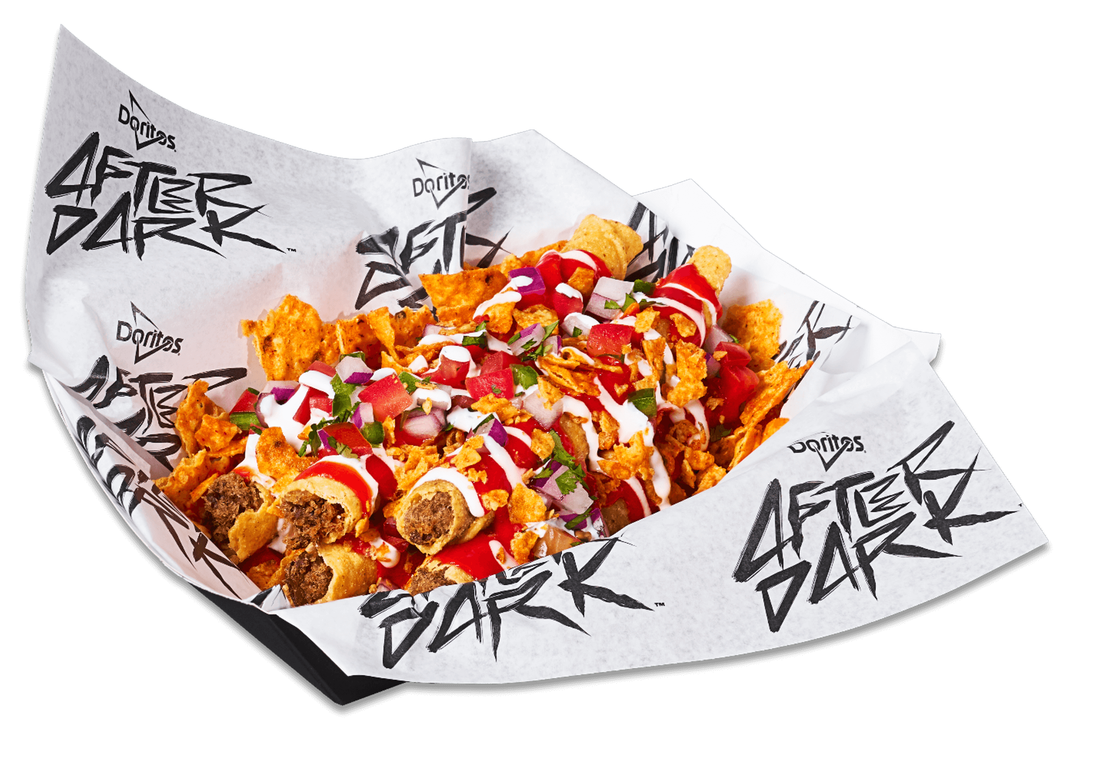 Carne asada mini‑tacos bring arena‑ready heat, coated in Flamin’ Hot® sauce and paired with crunchy Doritos® Flamin’ Hot® Limón chips. Finished with pico de gallo, cool guacamole, smooth Mexican crema, and a bold Cool Ranch® drizzle for a late‑night bite that absolutely pops.