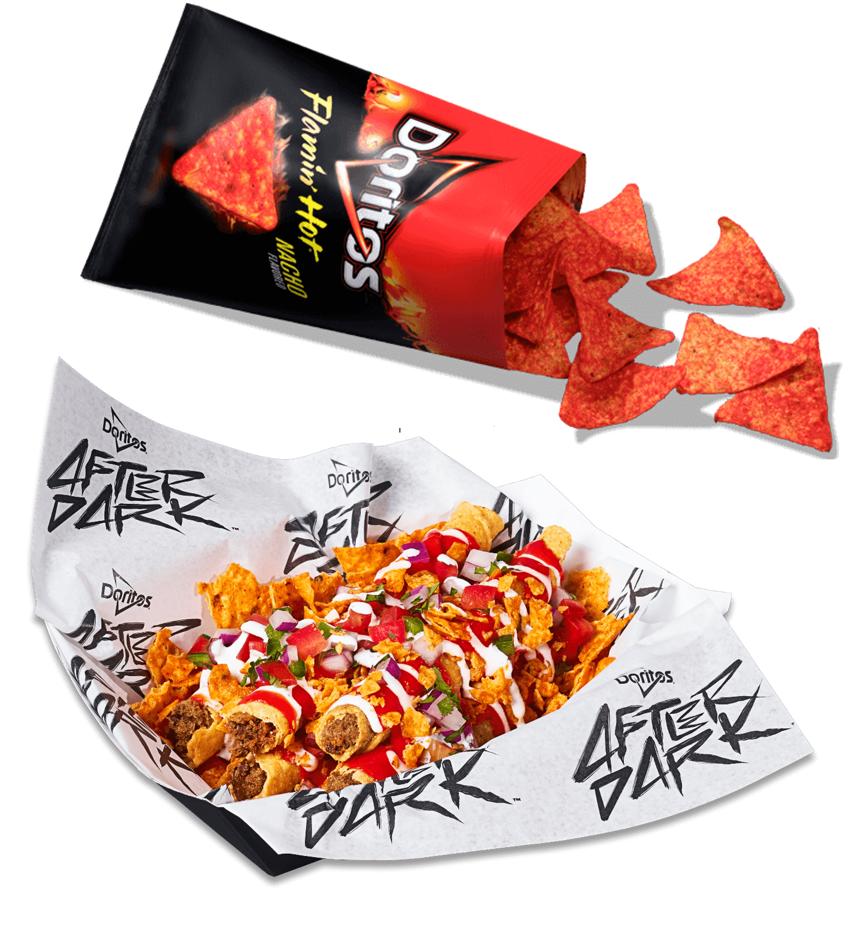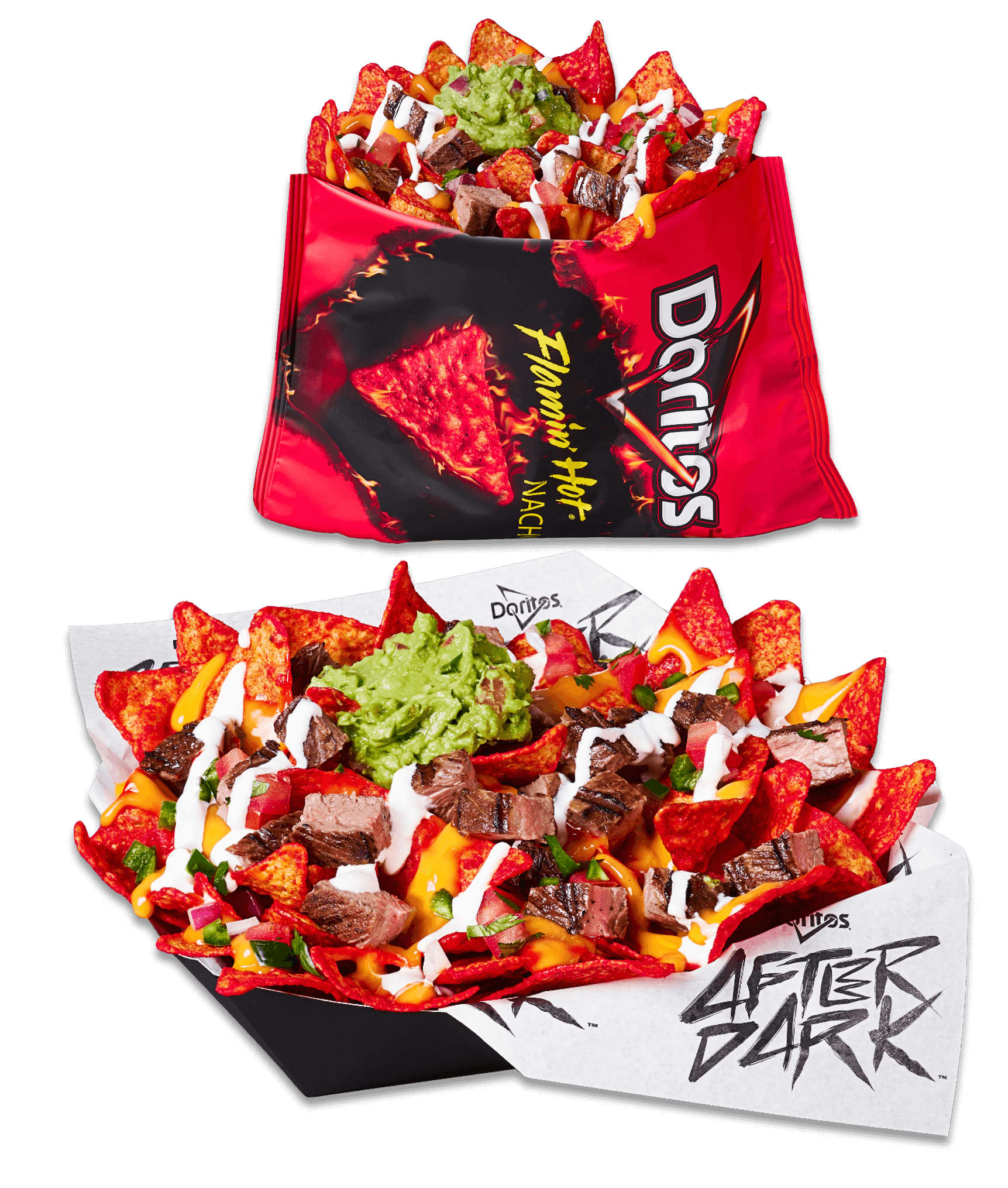 Choose your Doritos® base and pile on tender carne asada, lively pico de gallo, creamy guacamole, and gooey nacho cheese. A smooth Mexican crema finish cools the Flamin’ Hot® vibe for a craveworthy, late‑night nacho experience made to keep the crowd going.
