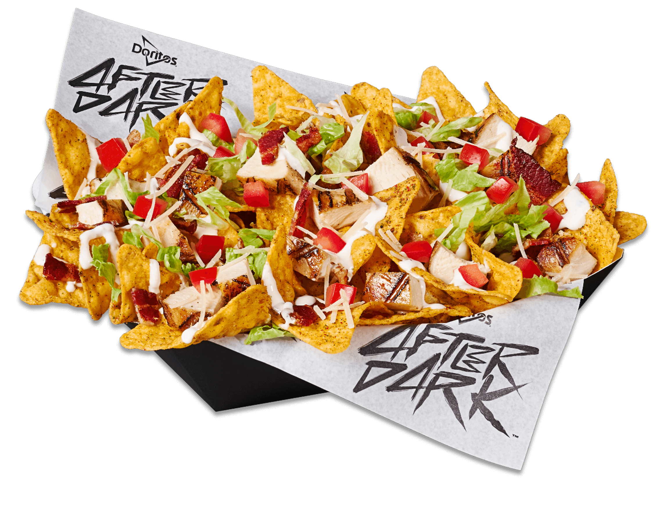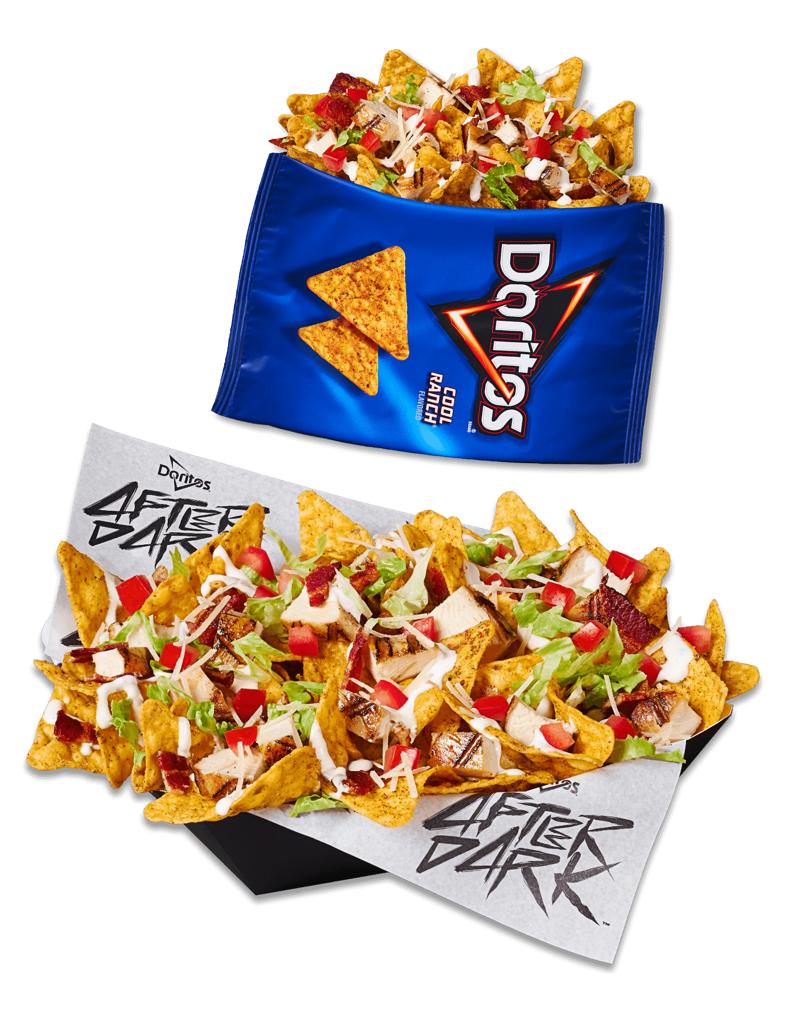 Pick your favorite Doritos® chips, then stack the flavor: juicy chicken, crispy bacon, fresh lettuce and tomato, and a Parmesan sprinkle. Finished with a zesty Cool Ranch® dressing drizzle, this loaded nacho platter delivers a cool, crunchy bite perfect for After Dark snacking.