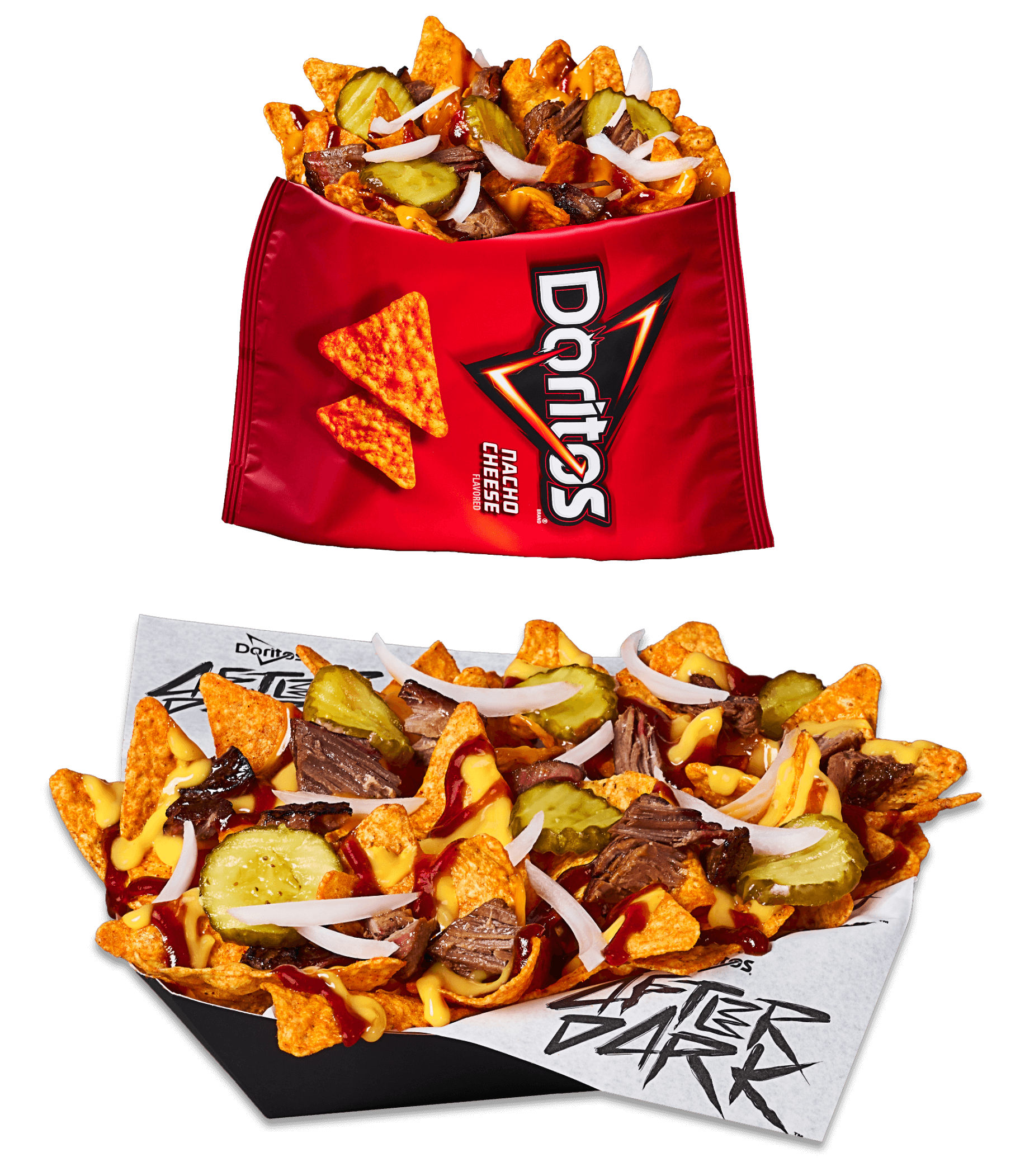 Select your favorit Doritos® as the base and prepare for mouthwatering brisket, smokey BBQ sauce, gooey nacho cheese, sliced dill pickles, and sweet onions loaded on top for a southern taste that hits all the right notes